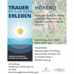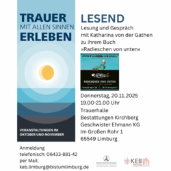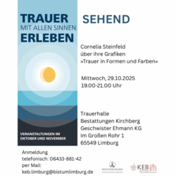 Katholische Region An der Lahn Trauer mit allen Sinne erleben KEB Screenshot Trauer mit allen Sinne erleben Eine Veranstaltungsreihe im Oktober und November in Limburg AS Sehend Cornelia Steinfeld spr
